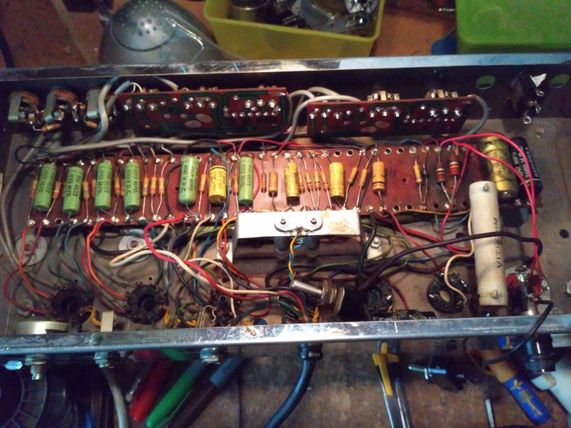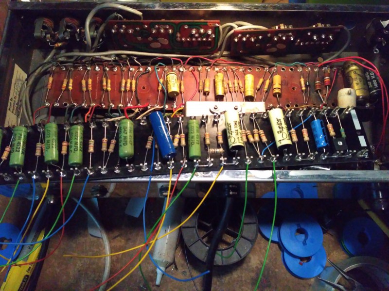 Un Ampeg b18n dans un état carnage, j'ai refait le boards complet, avec une partie de ses condos qui en valaient encore la peine.