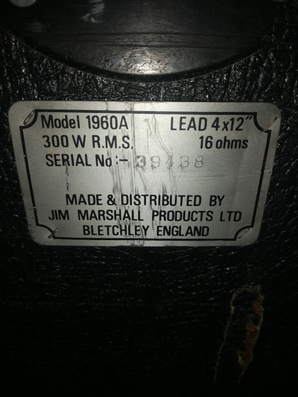 Est - il possible de connaître l'année de fabrication d'un baffle JCM 800 1960a lead series (photo en pj). Egalement le schéma élec/diagramme des HP d'origine ? ou s'en rapprochant pour ce modèle ? Le câblage actuel et raccordement aux HP étant "exotique" je vais tout reprendre à zéro.