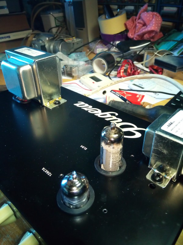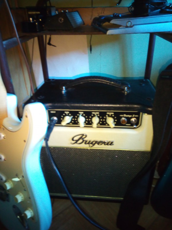 Coté lampes , Quand j'ai acheté l'ampli neuf chez Thomann,  l'EL84 Bugera d'origine a tenu .... 1 mois à peine . Je l'ai remplacé par une miniwatt dario  de 1960 neuve (collectionnant les TSF , j'ai un gros stock de lampes d'époque)  mais j'ai gardé la 12ax7 Bugera d'origine qui sonne pas mal et , depuis 2012 aucun problème avec .
