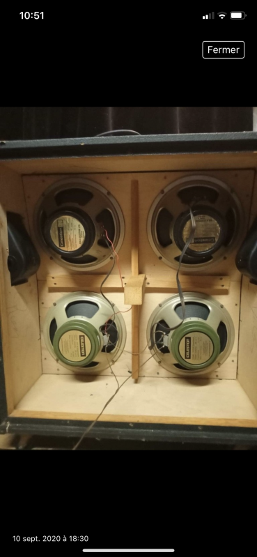 Franchement, testé un 4x12" marshall complètement refait par Rivera avec du Greenback (une 1ère pour moi ce HP j'avoue) et du V30 en X, bah grosse grosse claque. Du clean ultra pur fendérien au gros lead brutal.