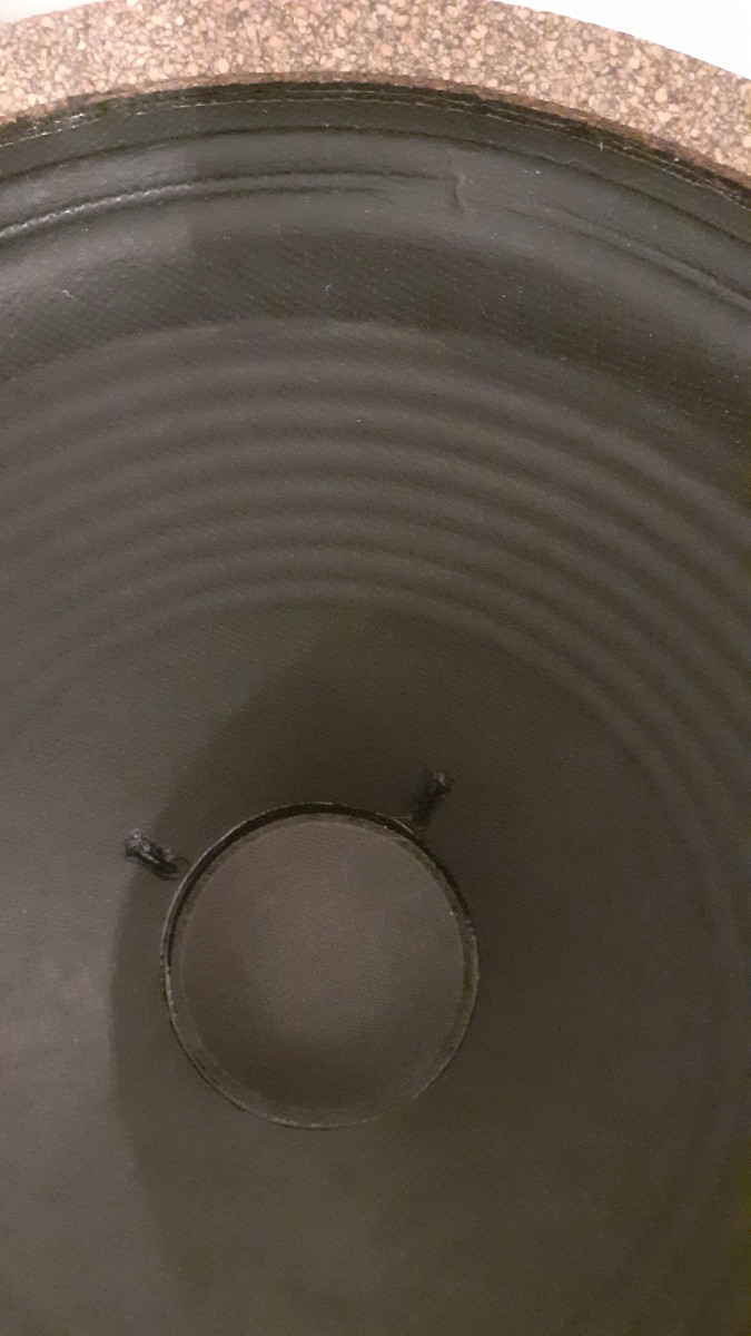 La tôle est déformée ? Quand tu poses le HP à plat sur une table il touche bien partout sur la périphérie ? Dans ce cas il y a certainement décentrement de la bobine. Sinon, si c'est juste la petite marque sur la suspension normalement ça ne devrait pas avoir d'incidence sur le son...