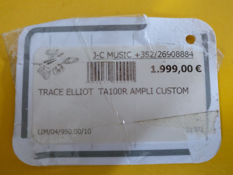 ) avec ma chère et tendre, et je tombe sur un drôle de truc en bois assez gros dans un des bacs, je regarde et me rend compte que c'est un ampli, tout couvert de gros scotch... La marque ? Trace Custom...