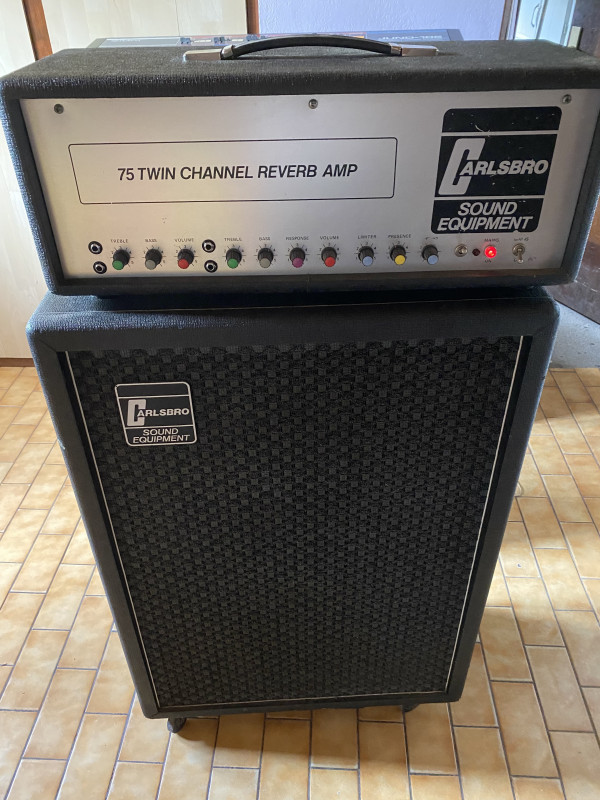 Salut, je suis à deux doigts d'acheter un Carlsbro T75 reverb avec son cab en 2x12 celestion Rola.
