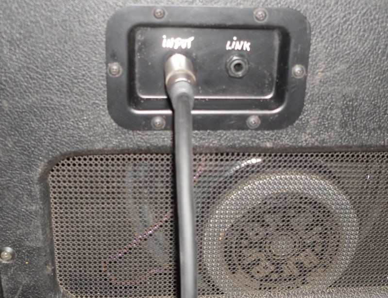Un cab 1x12 Beyma 8 Ohms, avec une entrée "input" et sortie "link"