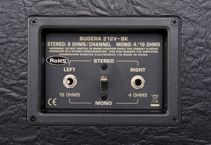 Un autre cab Bugera 212v-bk. avec une entrée 16 Ohms et une autre 4 Ohms, + un commutateur mono/stéréo.
