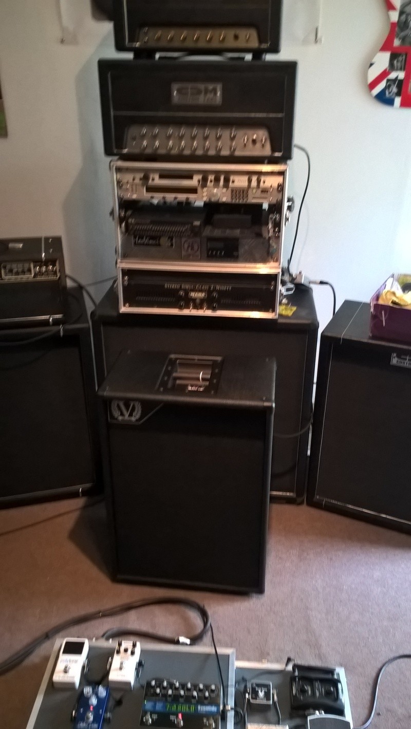 Le format de la caisse, en sapin pour le tour et bouleau pour les faces avant et arrière, les vieux et bons Marshall étaient ainsi fait, engendre un petit côté Vintage dans les mids que les V 30 ne restituent habituellement pas en tout cas avec mon matos, ce qui n'est pas pour me déplaire.....