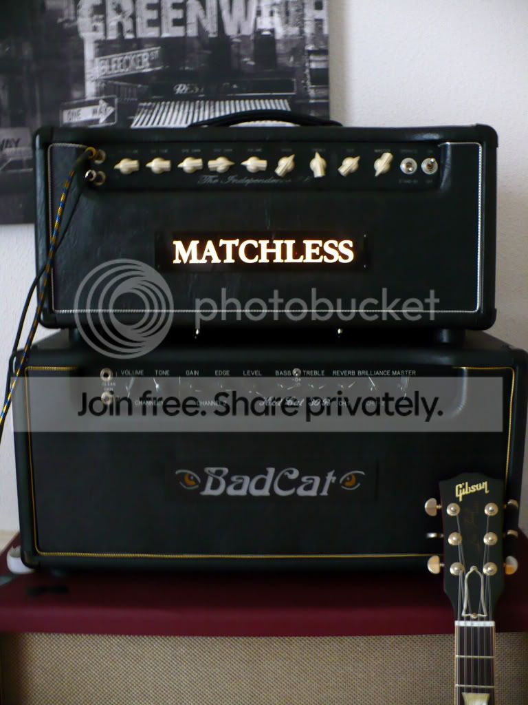 C'est sur une base Fender Black Face entre Vibroverb, Super Reverb et Pro Reverb. J'ai remplacé la reverbe par une boucle d'effet. L'ampli pousse dans les 40/45W. Le cab est en acajou.