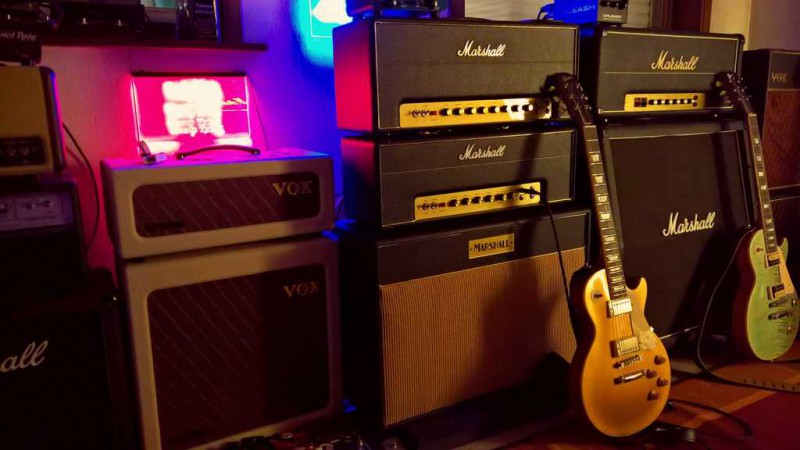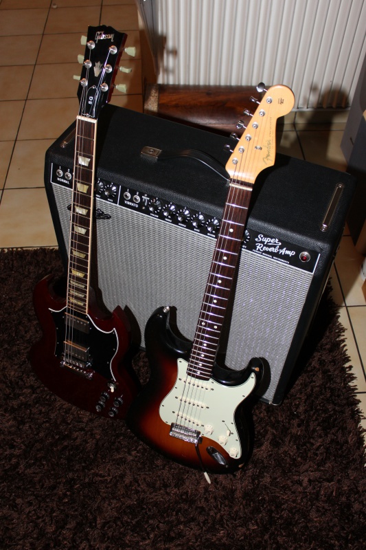 Oui, là j'ai maintenant mes trois types de Marshall préférés (JTM45, plexi et JMP100/2203). Manu(lonch) m'a un peu moddé le 1987X, j'en reparlerai.