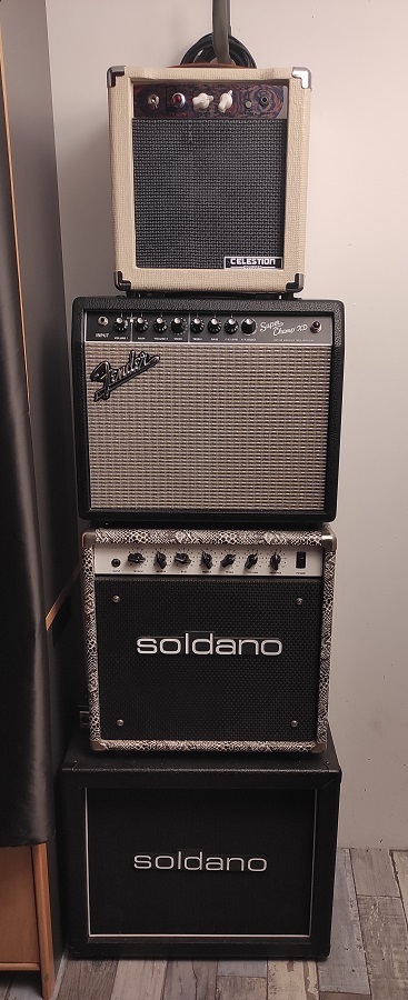 Le meilleur ampli que j'ai joué, un ceriatone plexi50 lead 68', j'ai remplacé les condos estampillé ceriatone par des sozo vintage, remplacement des 12ax7 par des 5751, cab 4*12 en G12H30, et une petite schaffer replica pour bien vitaminé le tout