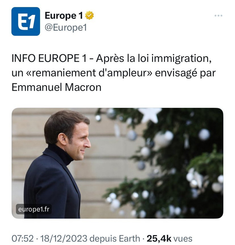 Un remaniement ministériel et un changement de PM (c'est exclu pour Darmanin qui voulait la place avec son fiasco immigration) tout le monde s'en fout car ça ne changera rien, il puis il faut trouver des candidats pour aller au casse pipe en fin règne chaotique, pour trouver pire que Aurore Berger, Béchu, Dussopt, Pannier-Runacher il va falloir creuser profond.