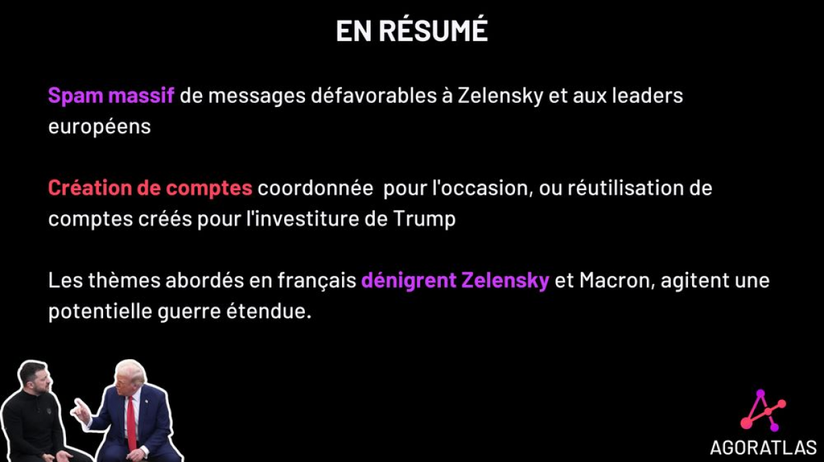 Je ne crois pas. Son message était ironique. Je n'ai jamais vu sur X-Twitter "bravo Trump vous êtes le meilleur" mais des arguments cyniques ou fallacieux ou des fakes news bien plus subtiles: l'Ukraine a attaqué la première, Zelenski s'est enrichi avec les aides, l'Ukraine a de toute façon perdu il faut arrêter le massacre. C'est franchement inquiétant car depuis le vote du Brexit (déjà complètement manipulé par Cambridge Analytica), ou l'élection de Trump en 2016, cela s'est largement amélioré. Je crois que les gens ne s'en rendent pas compte.