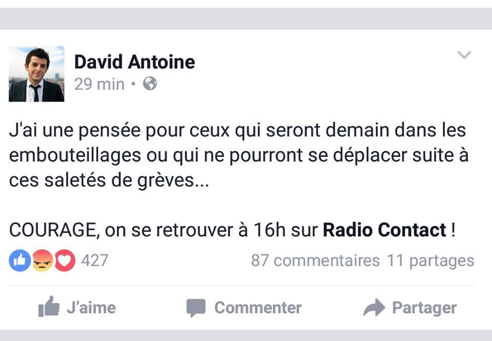 Il ne l'a pas dit, il l'a juste twitté. Et le "saleté de grève", quand on a passé sa carrière à faire gagner des godasses et des robots ménagers, et qu'on a aucune idée des raisons pour lesquelles certains font grève, bah ça passe mal