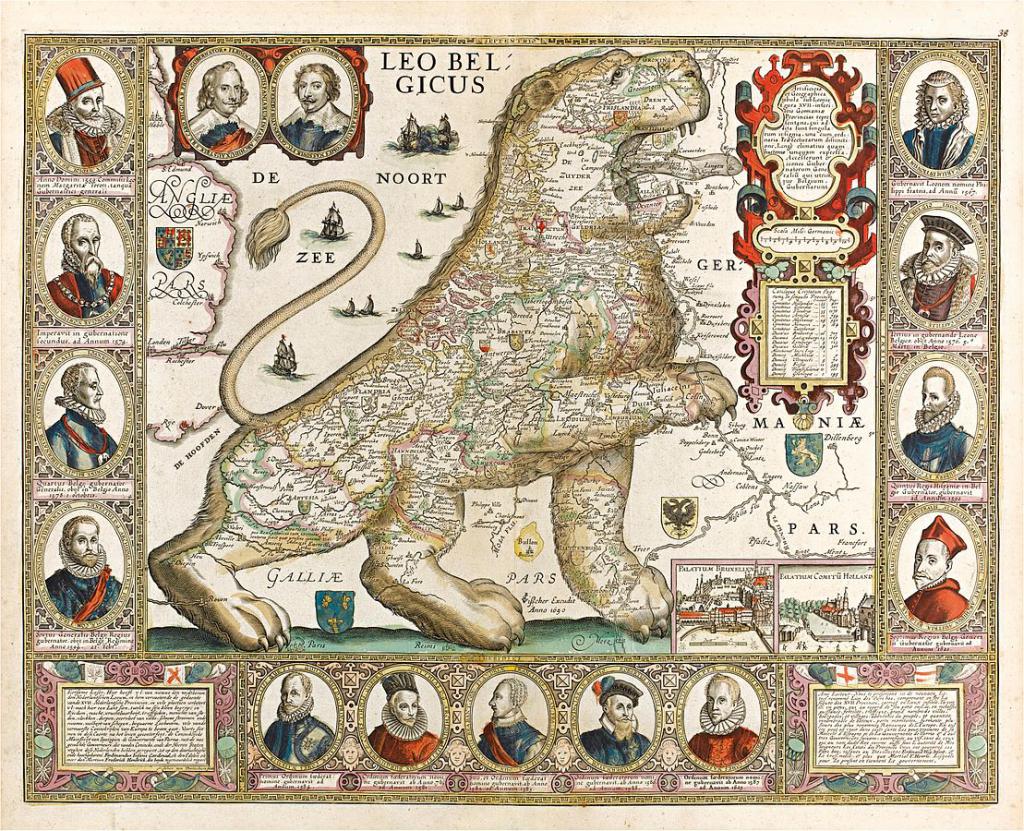autre info, les Habitants de pays-bas du 16- 17ème siècle étaient appélés "Belges" (et peut-être avant et après)... et la carte représentant les territoires (actuels Belgique+Pays-Bas+luxembourg) représentait un lion ... le Leo Belgicus....même après la division des pays-bas espagnols .