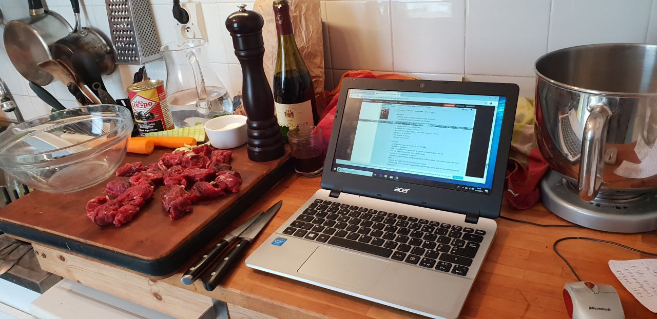 Wé alors là tout est dans un saladier en verre (celui à côté de la viande de la photo) dans le frigo avec un film plastique, ce soir vers 18h je lancerai la cuisson, du coup jusqu'à... minuit ou 2h du mat ? Ensuite ça refroidira et je réchaufferai pour dimanche midi, souvent les plats mijotés sont meilleurs le lendemain, je pense que c'est parce qu'ils ont refroidi + réchauffé, du coup je les fais la veille, ou la journée pour le soir et je leur laisse le temps de refroidir complètement avant d'être réchauffés et ça marche, ça a le goût du "meilleur le lendemain"