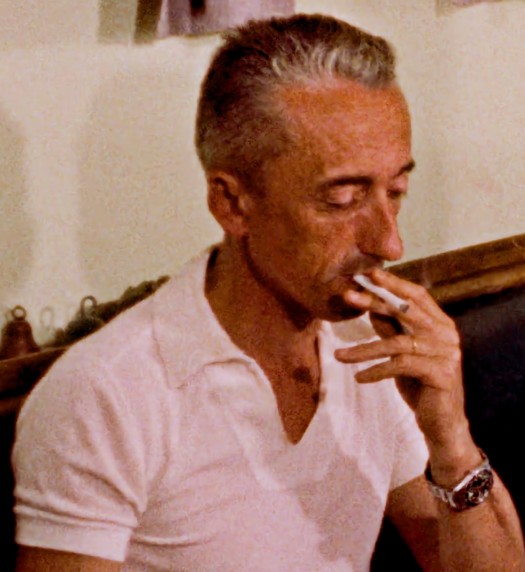 Cousteau avec sa Rolex trop large, pour pouvoir la mettre au dessus de sa combinaison de plongée...