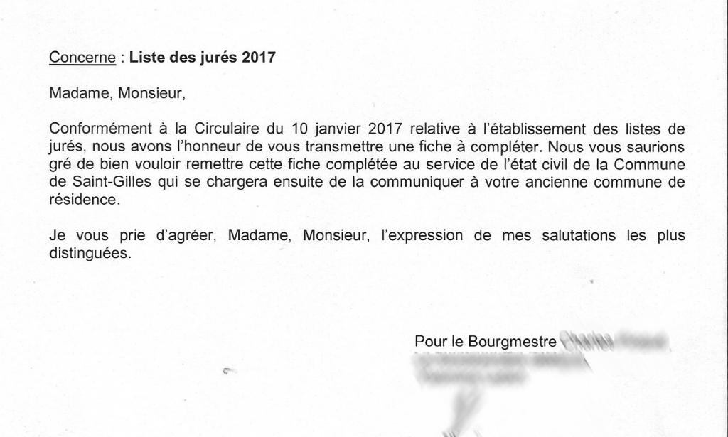 bref, ils ne sont pas au courant que je n'habite plus Bruxelles (autre arrondissement administratif)... j'ai rien contre le principe d'être juré, mais ça me ferait grincer de l'être à Bruxelles.