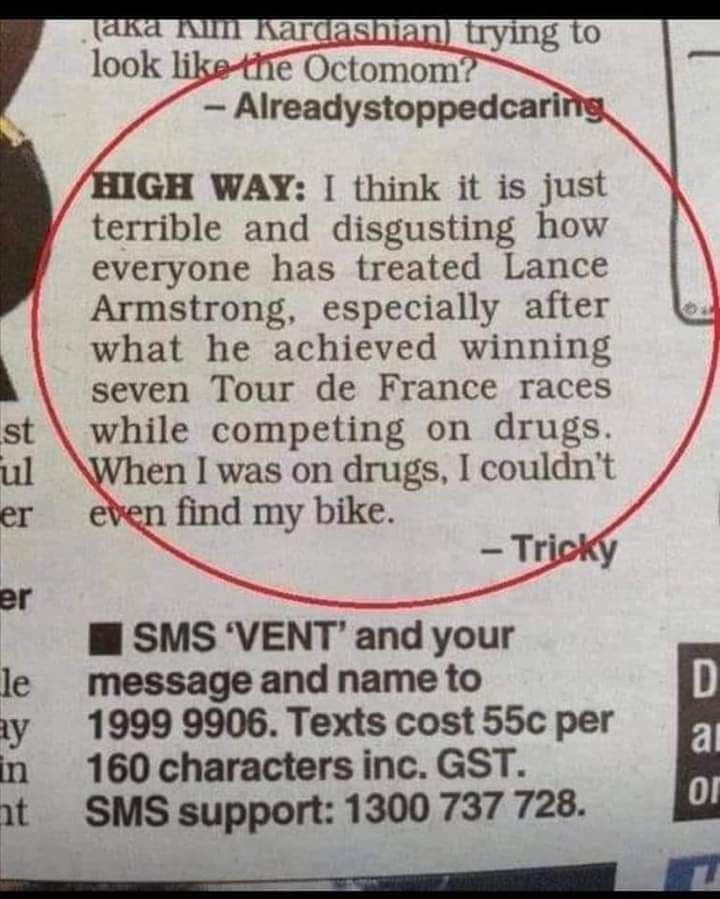 Celle avec Lance Armstrong m'a fait ma journée
