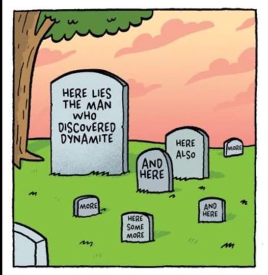 Le plus étrange c'est qu'il est mort d'une crise cardiaque, alors qu'il a travaillé toute sa vie sur la trinitroglycérine et a trouvé une forme stable (la dynamite) ; or une autre des formes stables de cette molécule a permis de créer un médicament permettant de dilater les artères rapidement (