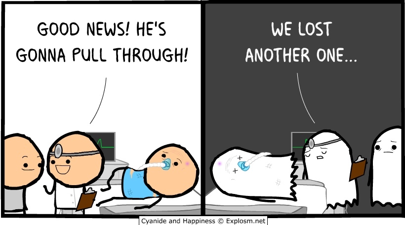 Pour ceux qui sont sur facebook, la page Cyanide and Happiness est vraiment drôle Il y a aussi une page en français, mais je trouve les traductions un peu aléatoires et elles enlèvent parfois le comique originel.
