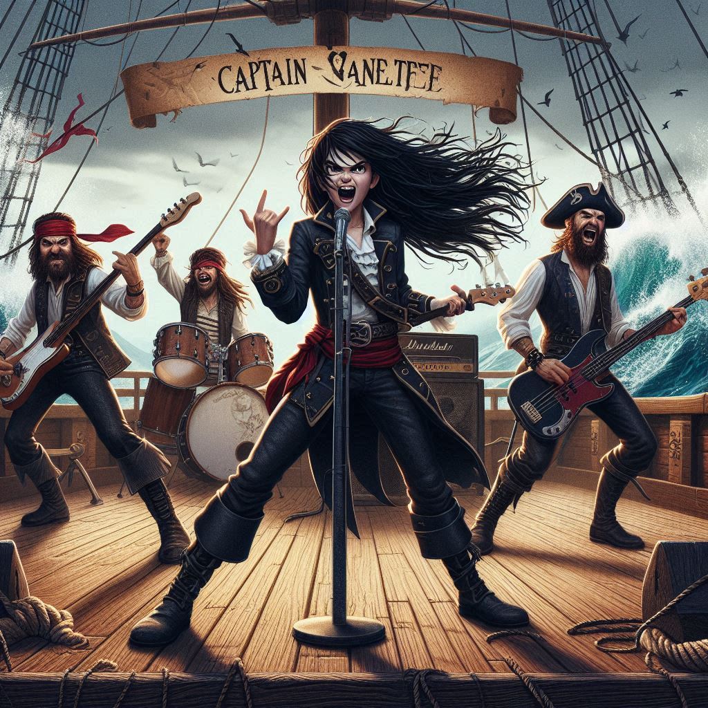 Exemple de groupe rock dessiné par l'AI (cherchez les invraisemblances morpho-guitaristiques)
