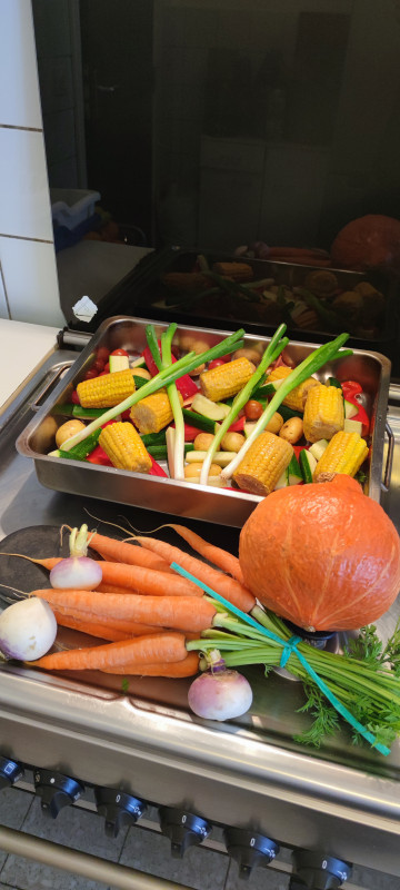 Superbe quiche du jour : parmesan, poireau, poitrine fumée, emmental, crémeux d'Anjou (dans la migraine), St Nectaire (sur le dessus)