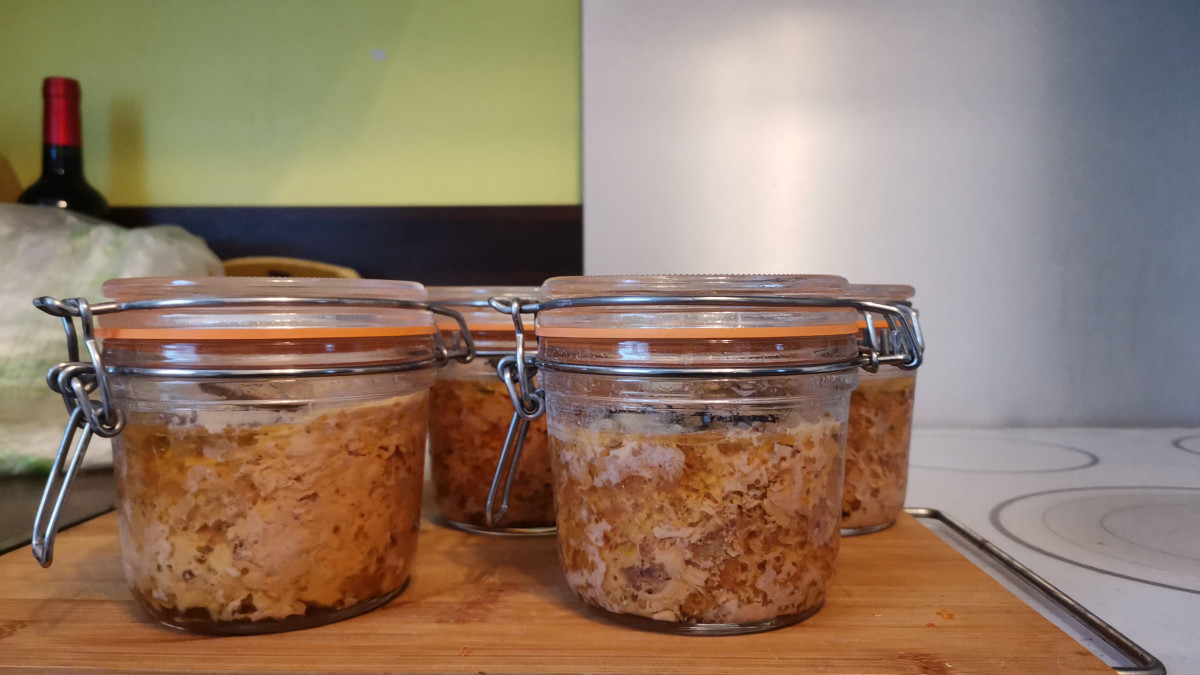 Tu recouvres de crépine, une feuille de laurier et 1 branche de thym.