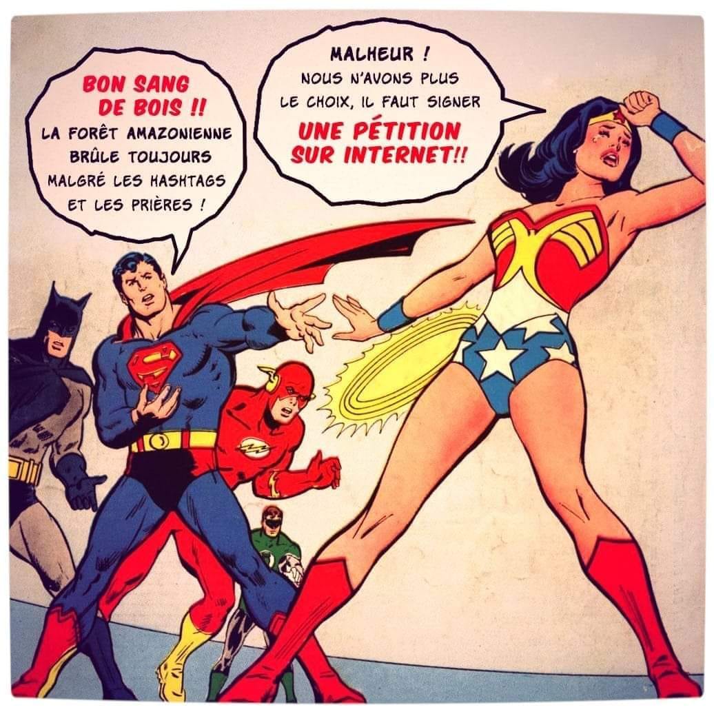 Le poumon de la Terre part en fumée (entre autres calamités que nous lui faisons subir) et vous vous perdez en questions futiles...