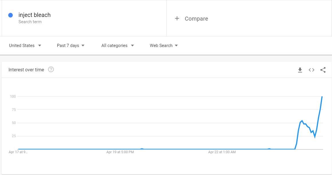 "Donald Trump déclare qu'il était "sarcastique" lorsqu'il suggérait qu'il fallait étudier l'hypothèse d'injecter du désinfectant dans le corps des patients"