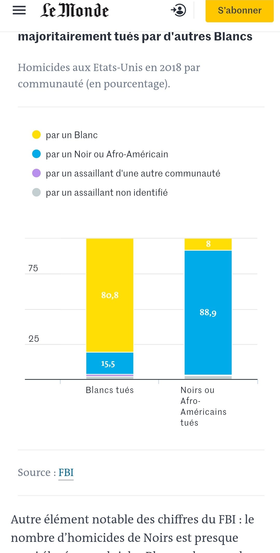 88% des noirs sont tués par des noirs et seulement 8 % par des blancs (contre 15,5 % pour les blancs par des noirs).
