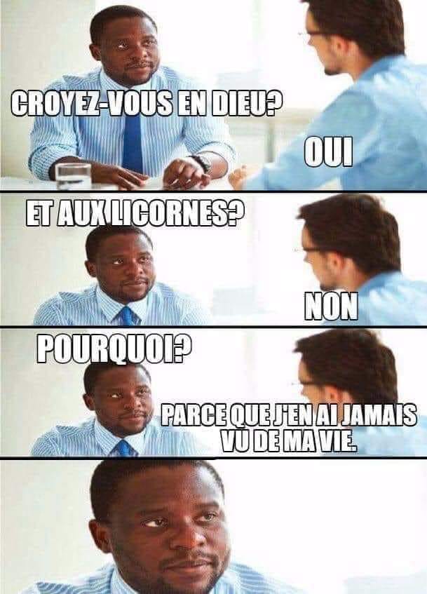J'ai toujours adoré ce "meme" plein de bon sens avec dieu et le licorne, c'est tellement bien simplifié.