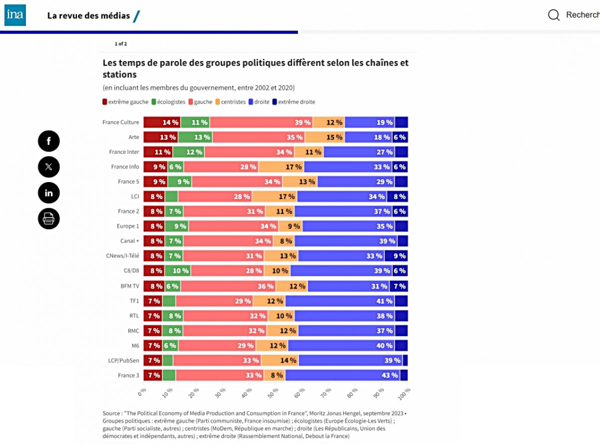 Déjà la période 2002/2020, les médias ont bien changé depuis. La montée en force de Balloré (qui a pris le pouvoir petit à petit dans le groupe C+, dans l'édition, Cnews ça date de, 2016, le rachat d'Europe1 de 2021). C'est justement depuis 2020 qu'il a mit le paquet, le point culminant ça a été la fabrication de Zemmour comme présidentiable.