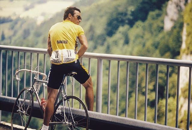 Bernard Hinault qui aura toujours bien plus la classe (même en pissant) que n'importe quel cycliste citadin lambda.