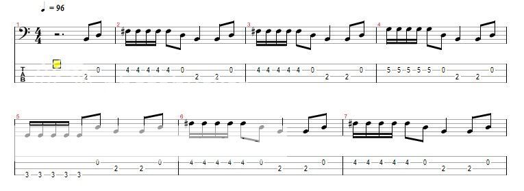 Le riff des couplets est identique si ce n'est que l'on reste plus longtemps sur les plans (4x en Bb et 4X en Ab).