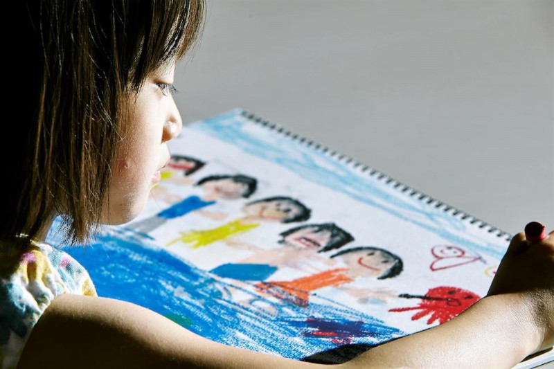 Scène que se remémore la toute petite, vers la fin, avec ses gros pastels de dessin et ses visages en face, à l’image d’un regard à l’envers, ou à rebours...