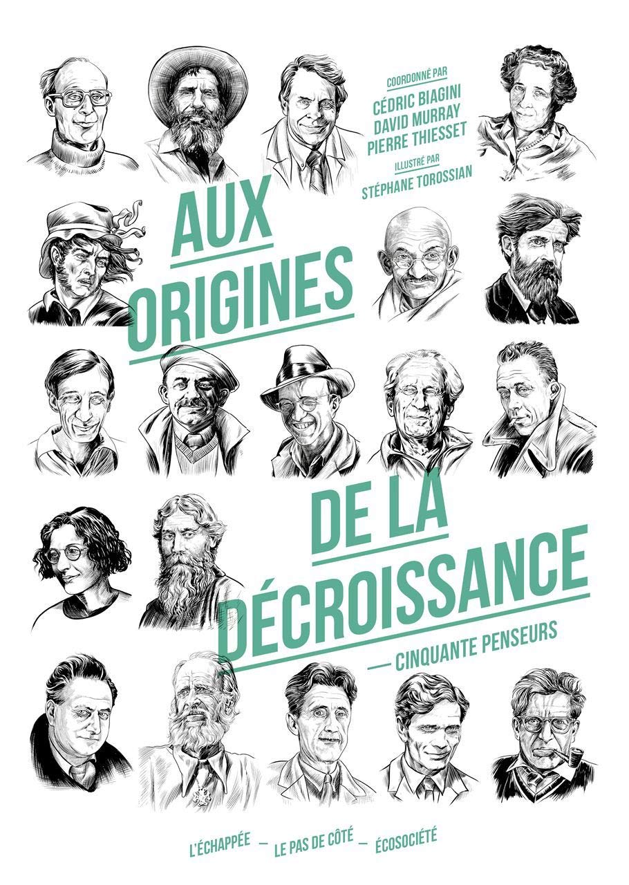 Edward Abbey | Günther Anders | Hannah Arendt | Georges Bernanos | Murray Bookchin | Albert Camus | Edward Carpenter | Cornelius Castoriadis | Bernard Charbonneau | Jean Chesneaux | Gilbert Keith Chesterton | Barry Commoner | Ananda K. Coomaraswamy | Guy Debord | Lanza del Vasto | Jacques Ellul | Pierre Fournier | Michel Freitag | Gandhi | Patrick Geddes | Nicholas Georgescu-Roegen | Jean Giono | Paul Goodman | André Gorz | Alexandre Grothendieck | Michel Henry | Aldous Huxley | Ivan Illich | Robert Jaulin | Stanley Jevons | Leopold Kohr | Gustav Landauer | Christopher Lasch | Ned Ludd | Dwight Macdonald | Herbert Marcuse | William Morris | Lewis Mumford | George Orwell | François Partant | Pier Paolo Pasolini | John Cowper Powys | Majid Rahnema | John Ruskin | Ernst F. Schumacher | Jaime Semprun | Rabindranath Tagore | Henry David Thoreau | Léon Tolstoï | Simone Weil