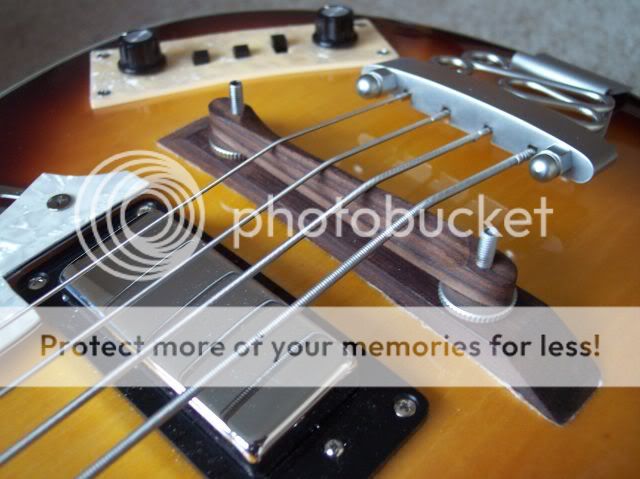 Du coup, je me suis décidé à lui offrir le vrai chevalet Höfner (et un jeu de cordes Höfner filées plat tant qu'on y est) - c'est vraiment un instrument TRES attachant, cette violin bass
