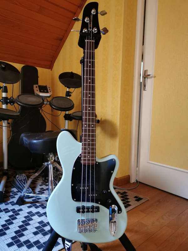 Perso Ibanez Talman Tmb30 comme 30 pouces. Couleur mint green. Confort du « short scale »quand on vient de la guitare. Super basse pour le prix (179 euros).