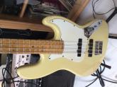 Guitare jazz bass ramené de Suisse, elle n'est pas jeune et à beaucoup jouée. A première vu elle à plus de 30 ans ! Trace d'usure mais son et jouabilité nickel. Je ne trouve nul part sur la toile cette marque !