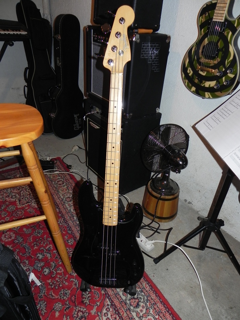 En fait, c'est un tas de basses différentes. Ca ressemble à une Precision mais le manche est un Carvin et l'électronique a été complètement modifiée au cours du temps par les différents techniciens à tel point que lorsque je suis reparti sur la route en 1999, j'ai demandé à Fender de me faire de copies de sécurité. Ils m'ont dit "On peut la copier, mais cette basse n'est pas une Fender Precision" (:lol