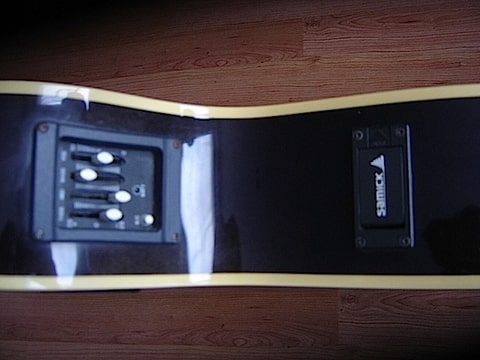 micro piezo et préampli 3 bandes (lo, mid, treb, volume)