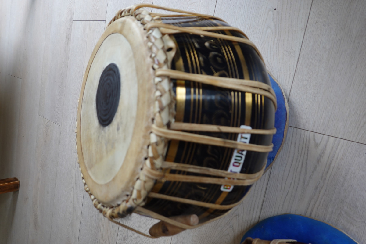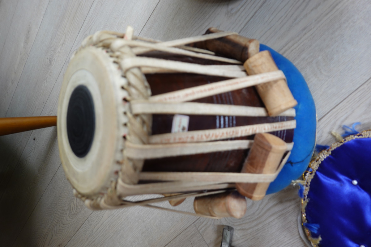 Je mets quelques photos et voici ce qu'il y a d'inscrit sur une étiquette collée sur le petit tabla : Mo. 9839269160. NIYAZ AHMED (Raju).