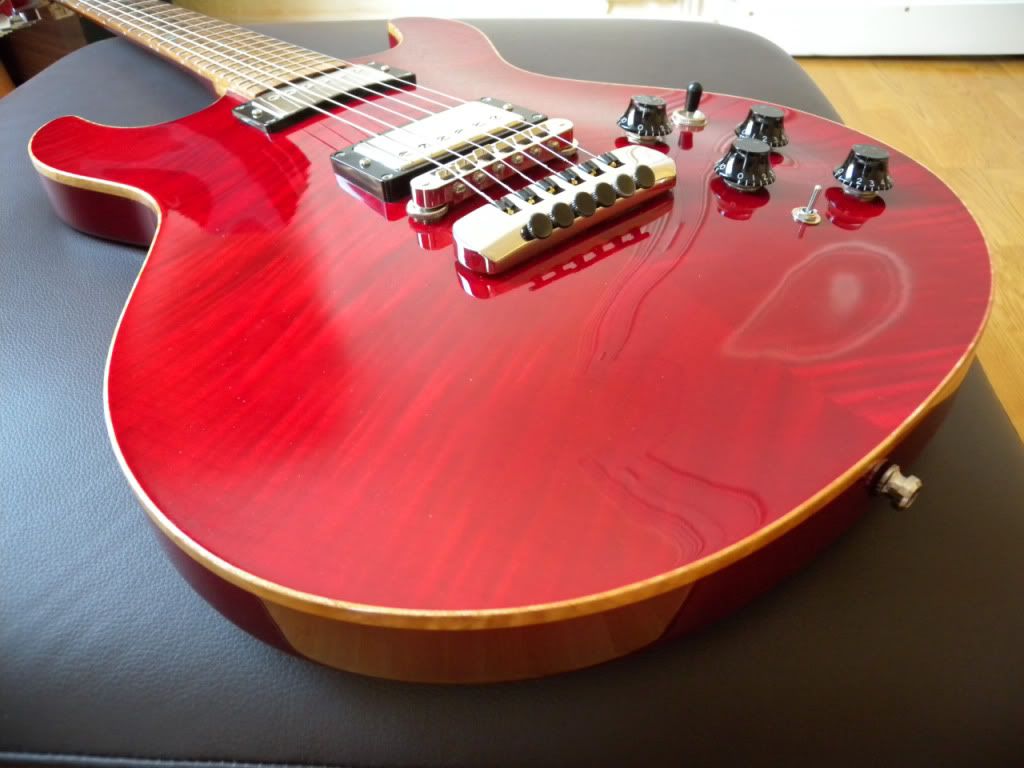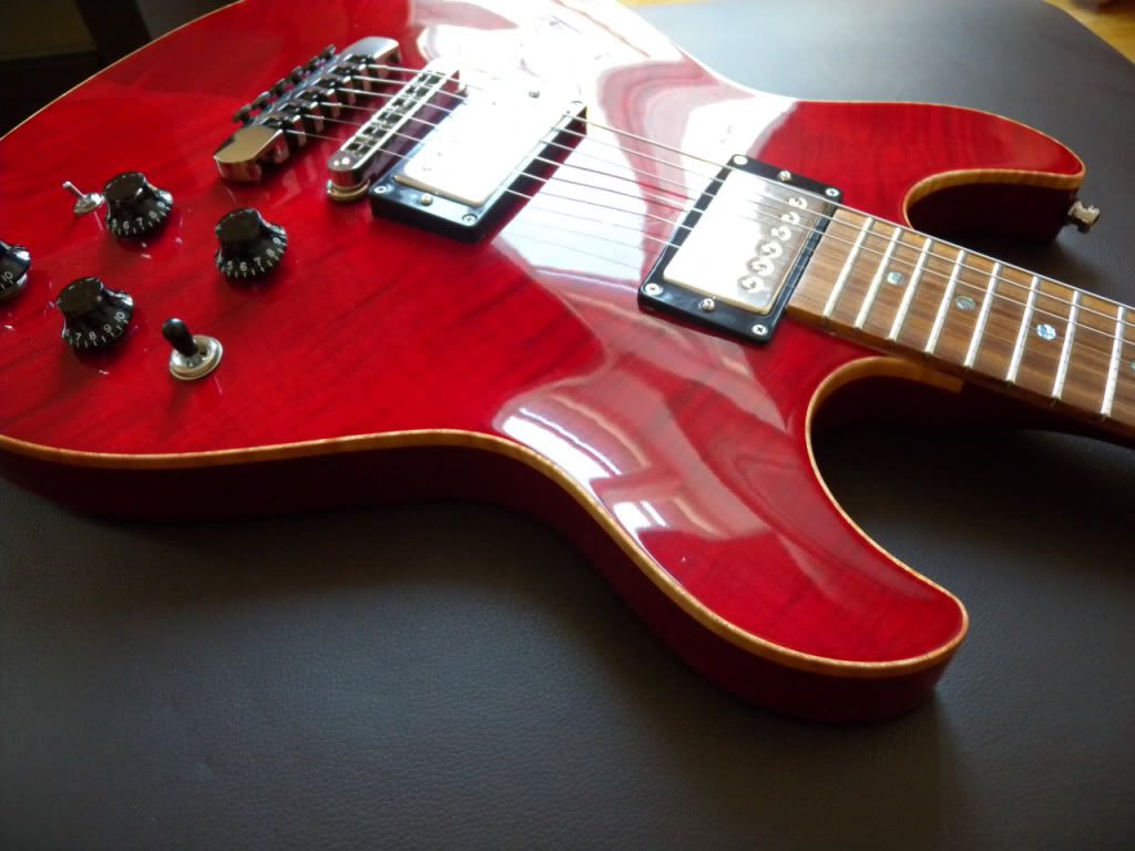 Two of Smith’s designs were solidified – the Flame and the Esprit (pronounced espree). Both featured alder bodies with routed tone chambers, maple tops, and set-in necks.