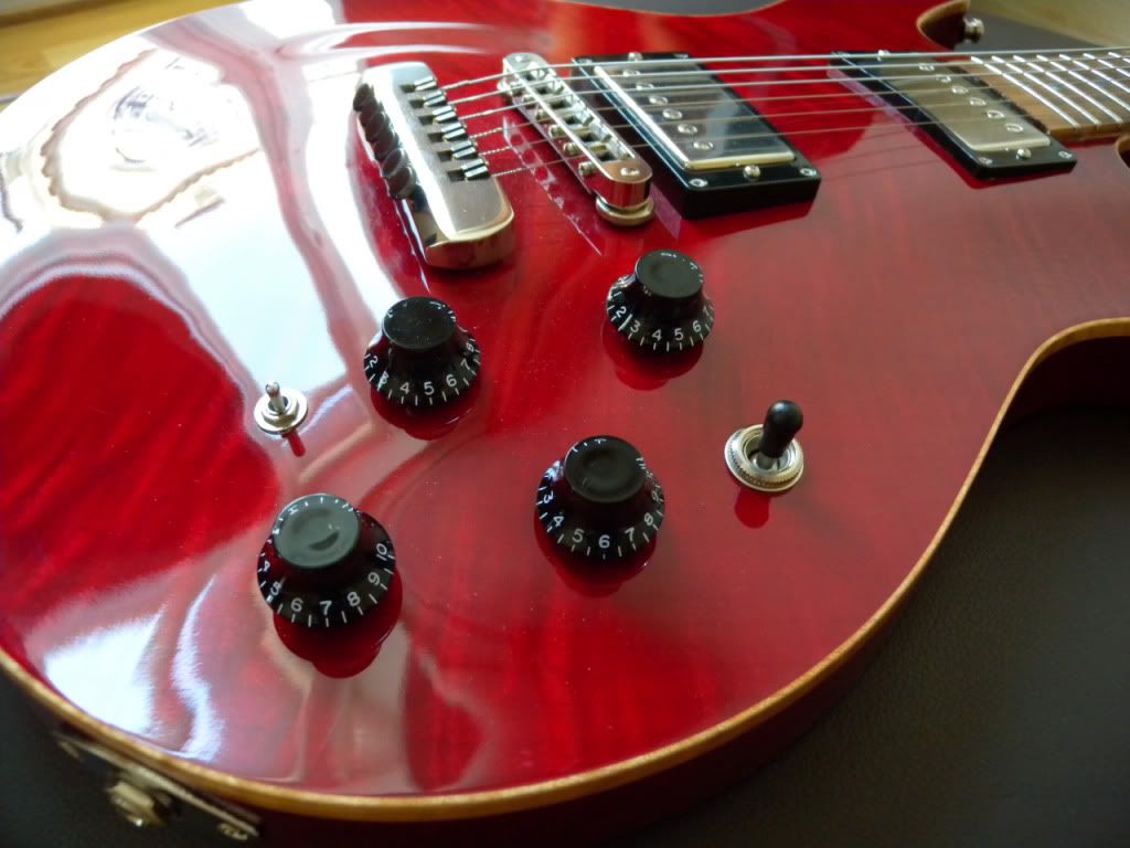 PUs are Seymour Duncan 59 (neck) and JB (bridge). A coil switch operates on both PUs, versatile electronics,