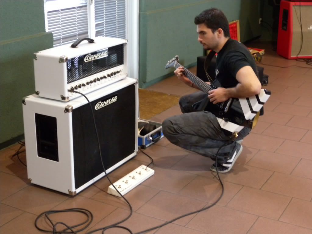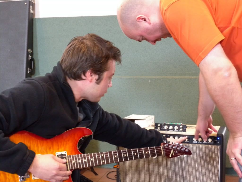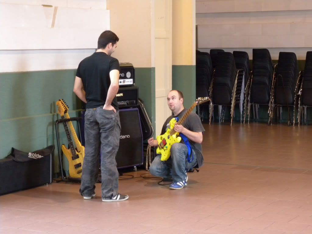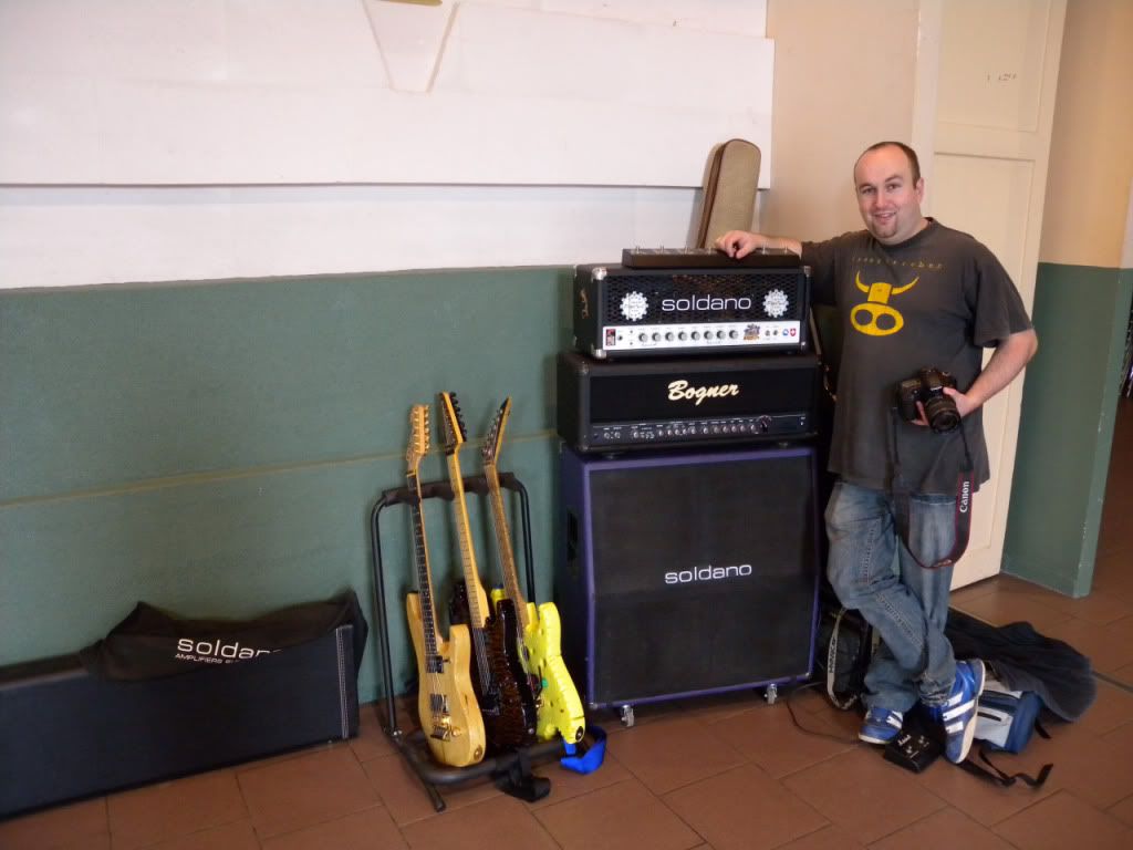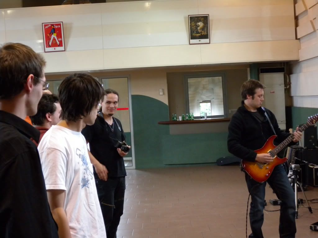 Quant aux avis, soyons objectif (pour une fois ça fera du bien sur ce forum), tout le matos présent était excellent, ne serait-ce que question ampli (Egnater, Marshall, CAA, Cornford, Soldano, Diezel, Kustom, H&K, VHT...) et guitare (Tom Anderson, Suhr, Gibson CS, Fender CS, Luthier, Lag, Music Man, PRS, Washburn...) bref, et c'est en-cela qu'une telle journée doit se réaliser (à nouveau), du matériel que l'on ne voit jamais en magasin.