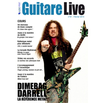 Le numéro de Guitare Live de ce mois-ci se penche sur l'un des monuments du heavy metal : Dimebag Darrell, feu guitariste lead de Pantera. On y passe au crible sa vie, son oeuvre... surtout ses plans, en fait. Ça n'est pas tout : Ruddy Meicher vous apprendra les hammers et les pull-off sur guitare acoustique et Brice Delage un morceau style blues noir américain à la John Lee Hooker.