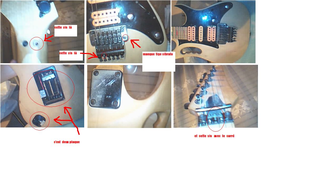 Ce que je ferais à ta place Squall85300, c'est de trouver un luthier sympa, a qui tu pourrais exposer ton problème, les pieces sont facilement trouvable et tu ne devrais pas en avoir pour beaucoup d'argent. Demander aussi a ce luthier de verifier l'état du floyd, a savoir si il est encore en bon état, si les couteaux ne sont pas user (au quel cas, la guitare risque de se désacordé au moindre mouvement du vibrato).