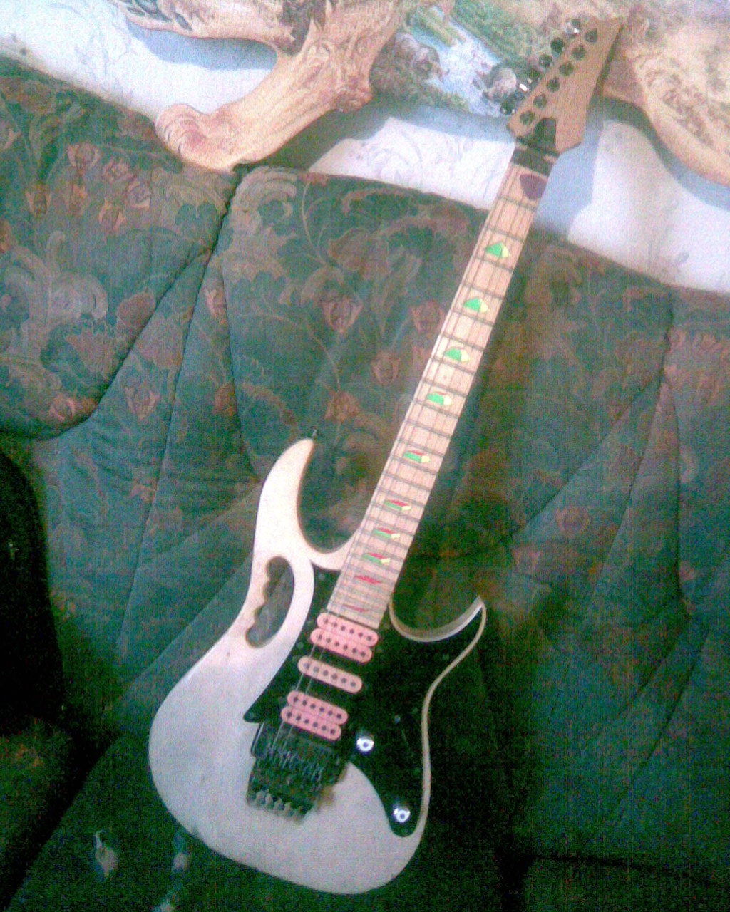 Pour ce qui est de la côte de la guitare, elle ne doit plus valoir grand chose, ça devait être une JEM77 DY ou SK (Jaune fluo ou Rose fluo), et l'ancien posseseur a du se lasser de la couleure qui est trés kitch / 80's. La guitare a du coup perdue beaucoup de valeure mais bon ca reste quand même un trés bon instrument !