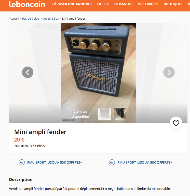 Au cas où ça serait vite vendu et que l'annonce soit désactivée, vu qu'un Fender comme ça c'est hyper rare :