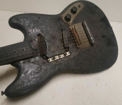 Non mais là c'est pas possible, c'est une blague. C'est évidemment une guitare récupérée après un incendie.