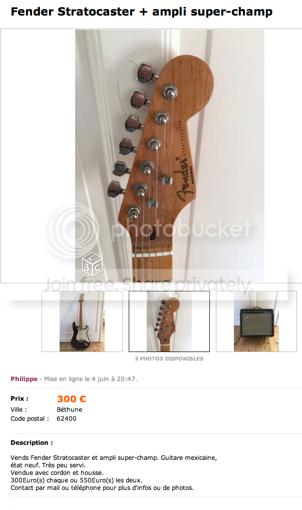 ou bien : je vends ma guitare plus cher que le prix neuf, il doit bien exister un naïf qui n'y
